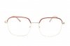 Oprawa damska w czerwieni, metalowa, w geometrycznym kształcie, ponadczasowa. W zestawie etui i ściereczka.