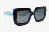 Oryginalne okulary przeciwsłoneczne, w ciekawym kształcie, czarne z niebiskimi zausznikami, duży rozmiar, soczewka szara, barwienie pełne, polaryzacja, filtr UV, cat 3,