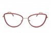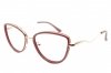 Klasyczna oprawa damska w czerwieni ze złotem, tworzywo z metalem, w kocim kształcie W zestawie etui i ściereczka.