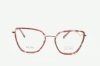 Ciekawa oprawa, klasyczny kształt, geometryczny, czerwona, cieniowana, metal i tworzywo, lekka, oryginalna, ponadczasowa