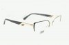 Klasyczna oprawa damska, z metalu, złota z dodatkiem czerni, ponadczasowa, w zestawie etui i ściereczka.